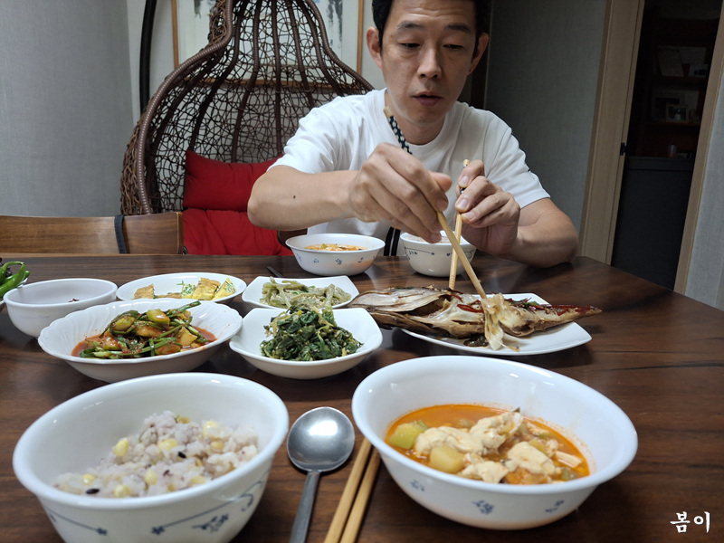 고구마줄기 볶고 깻잎볶으니 나물이 두가지다~