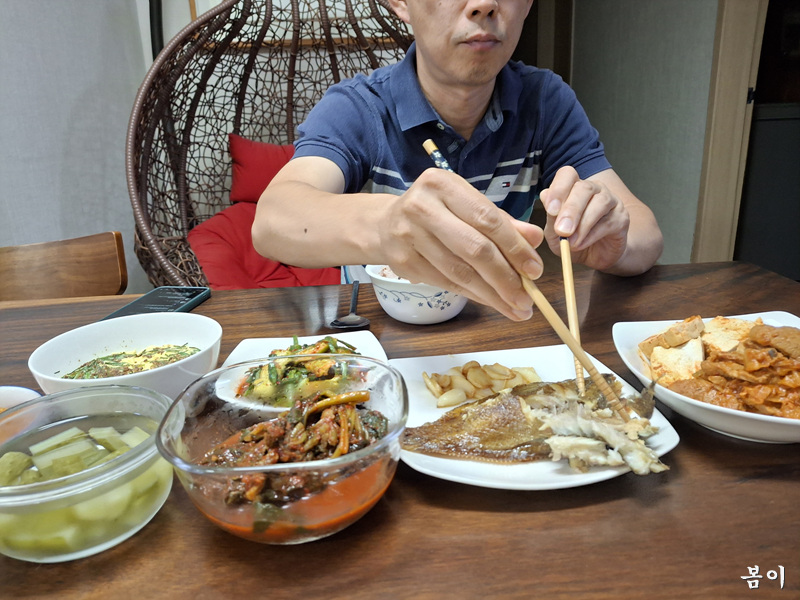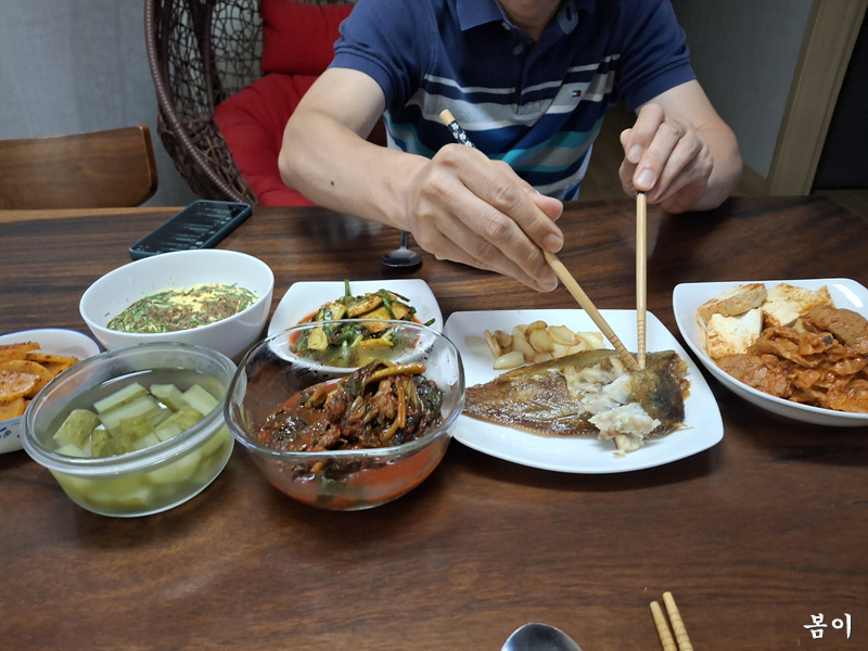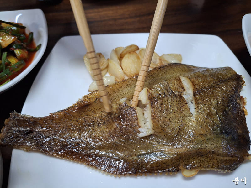 통영 가재미 굽고..