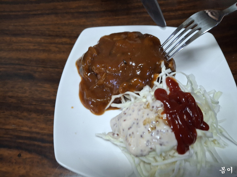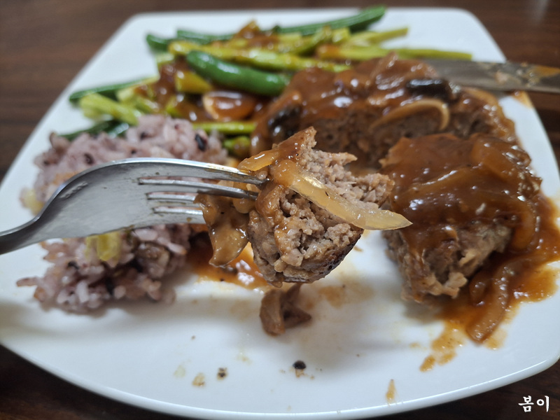 함박스테이크 맛있게 드셨다고 내게 두덩이준다,