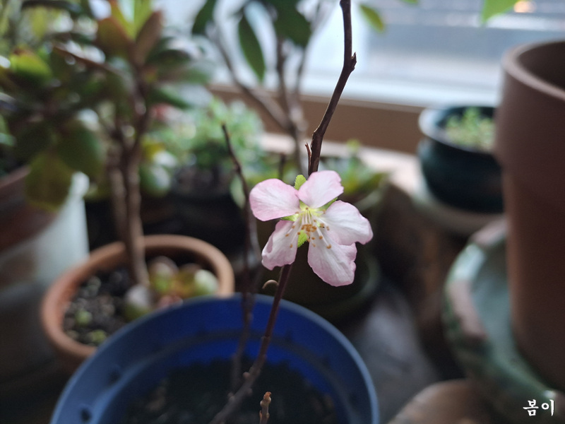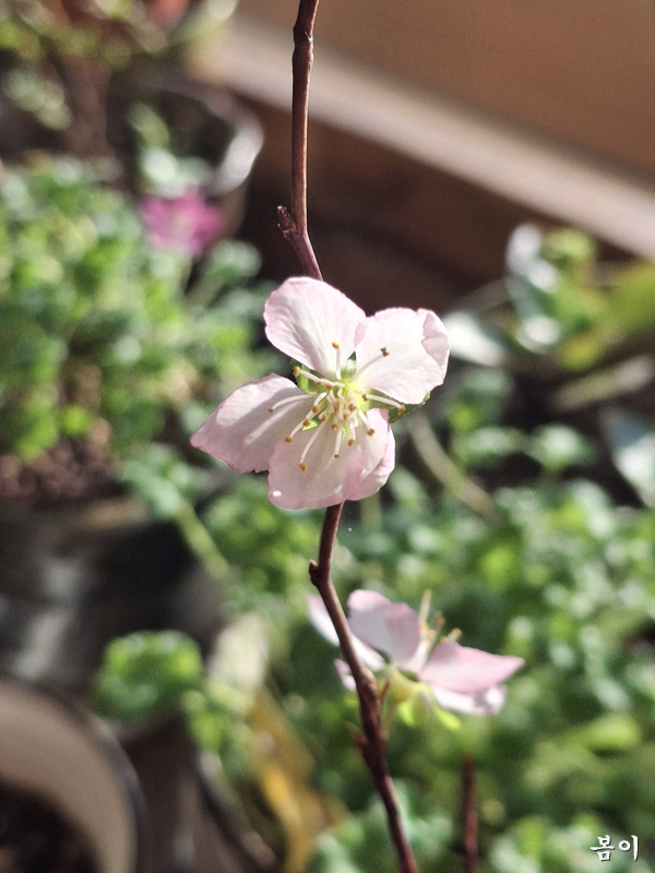 산앵두 삽목둥이 작은 몸에서 두개가 핀다....ㅎ