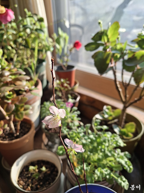 아직 나오면 안 되는데 빼곰히 고개를 내민다,