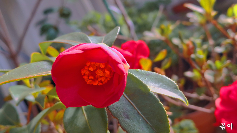 늦둥이 동백 한송이가 붉게 물들이고....^^