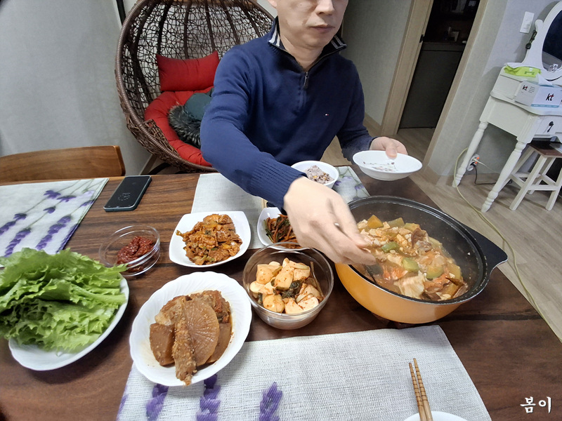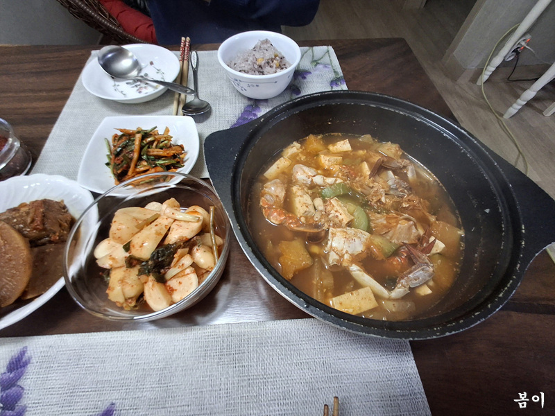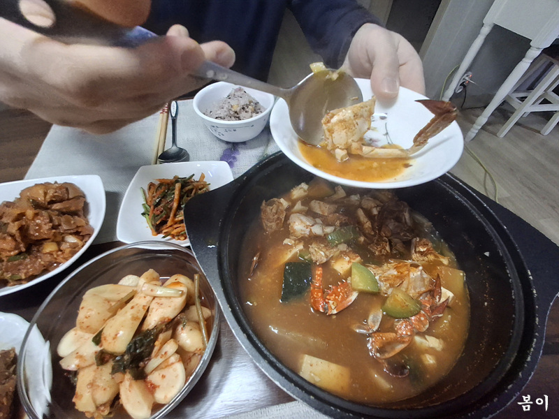 코다리찜과 게,매운탕으로 차린 저녁밥상...