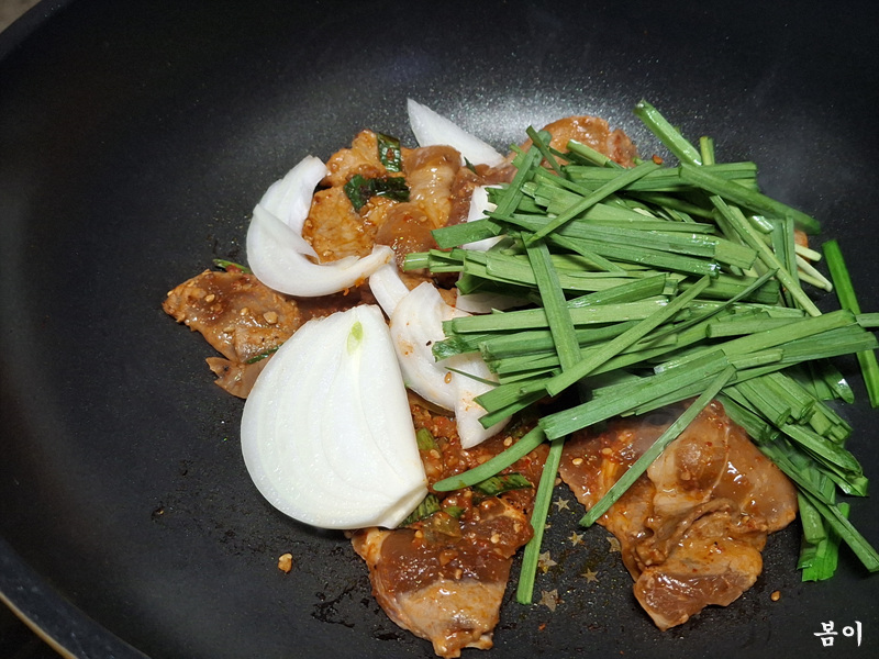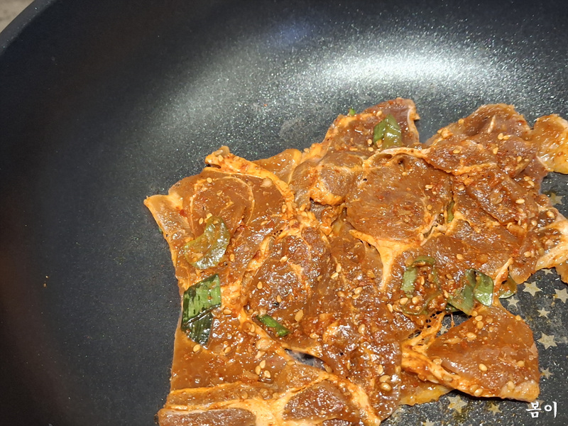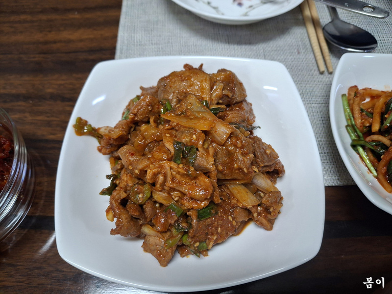 돼지불고기 고추장에 무쳐서 볶아내고...